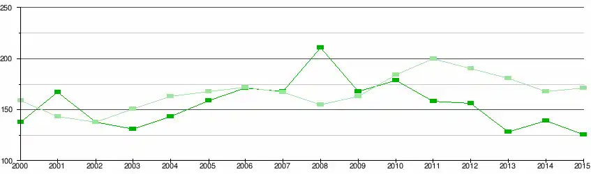 | 2000 | 2001 | 2002 | 2003 | 2004 | 2005 | 2006 | 2007 | 2008 | 2009 | 2010 | 2011 | 2012 | 2013 | 2014 | 2015 | |