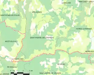 Saint-Pierre-des-Tripiers est limitrophe de six autres communes dont trois dans l'Aveyron.