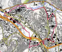 L'occupation des sols de la commune, telle qu'elle ressort de la base de données européenne d’occupation biophysique des sols Corine Land Cover (CLC), est marquée par l'importance des territoires artificialisés (100,1 % en 2018), en augmentation par rapport à 1990 (93 %). La répartition détaillée en 2018 est la suivante : zones urbanisées (62,6 %), zones industrielles ou commerciales et réseaux de communication (29,6 %), espaces verts artificialisés, non agricoles (7,9 %)[19]. L'évolution de l’occupation des sols de la commune et de ses infrastructures peut être observée sur les différentes représentations cartographiques du territoire : la carte de Cassini (XVIIIe siècle), la carte d'état-major (1820-1866) et les cartes ou photos aériennes de l'IGN pour la période actuelle (1950 à aujourd'hui)[Carte 1].