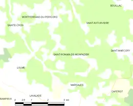 Saint-Romain-de-Monpazier est limitrophe de six autres communes. Au sud, son territoire est distant d'environ 470 mètres de celui de Lavalade.