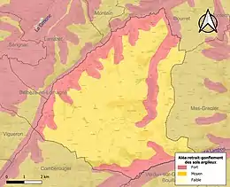 Le retrait-gonflement des sols argileux est susceptible d'engendrer des dommages importants aux bâtiments en cas d’alternance de périodes de sécheresse et de pluie. La totalité de la commune est en aléa moyen ou fort (92 % au niveau départemental et 48,5 % au niveau national). Sur les 476 bâtiments dénombrés sur la commune en 2019, 476 sont en aléa moyen ou fort, soit 100 %, à comparer aux 96 % au niveau départemental et 54 % au niveau national. Une cartographie de l'exposition du territoire national au retrait gonflement des sols argileux est disponible sur le site du BRGM[28],[Carte 3].