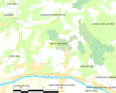 Saint-Sauveur est limitrophe de cinq autres communes dont Lembras au nord-ouest sur environ 220 mètres. Au sud, son territoire est distant d'environ 230 mètres de celui de Saint-Germain-et-Mons.