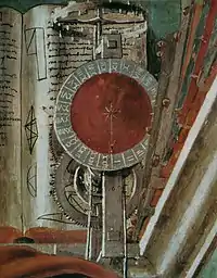 L'horloge indique la première heure après le lever du soleil. Située précisément dans le temps, la scène souligne le travail intense du saint, déjà, ou encore au travail à cette heure.