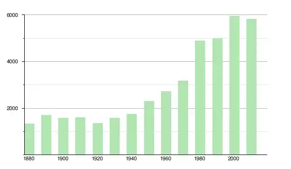 | 1950 | 2 297 | ▲ +30,66 % | |