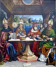 - Mais que Barbera 1998, p. 20 rapproche de l'Annonciation de Petrus Christus de 1452 (Gemäldegalerie, Berlin)