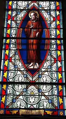Vitrail de saint Wandrille (Sanctus Wandregisilus) dans l'église Notre-Dame à Esclavelles 76270 Seine-Maritime.