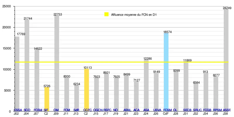 - de 222 461 spectateurs en 19 rencontres de Division 1, soit une moyenne de 11 708/match.