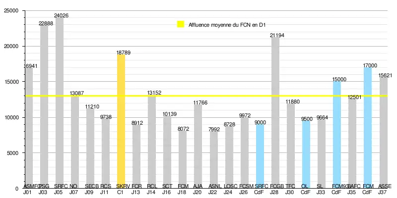 - de 50 500 spectateurs en 4 rencontres de Coupe de France, soit une moyenne de 12 625/match.