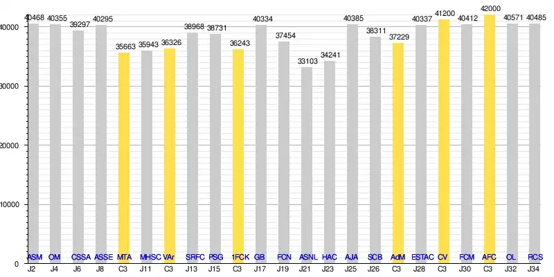 - « LFP.fr - Ligue de Football Professionnel - Ligue 1 - Affluences par journée, par club, taux de remplissage », sur lfp.fr (consulté le )