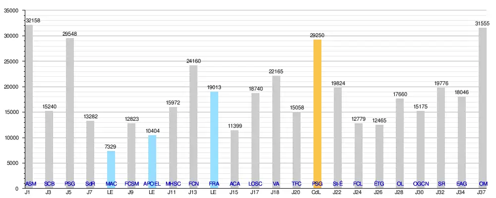 | Ligue 1 | - | - | 38 | 13 | 14 | 11 | 49 | 43 | +6 |
