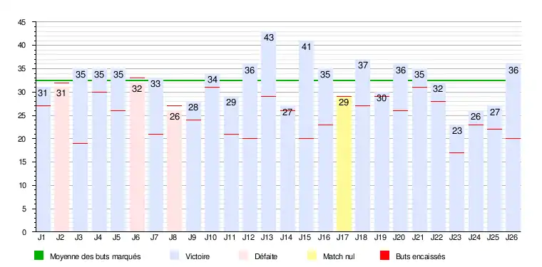 Les Parisiens ont inscrit 842 buts en 26 matchs de championnat (soit 32,4 buts/match) et ils ont encaissé 661 buts. Le club a la meilleure attaque et la deuxième défense de la saison.