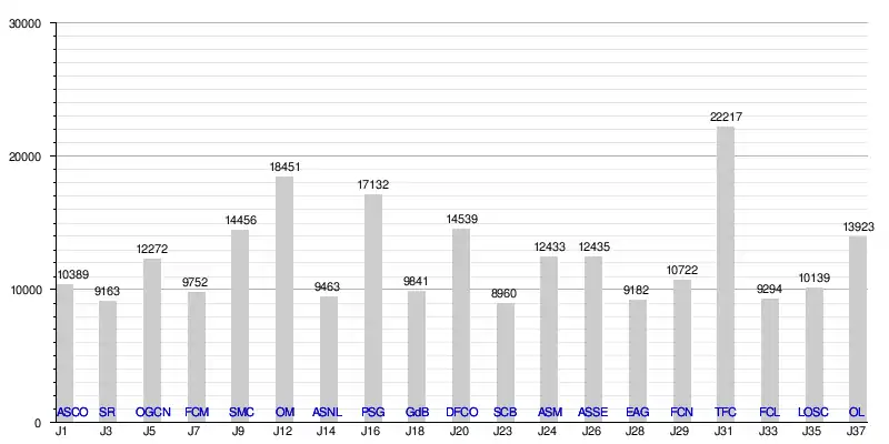- « Affluences Ligue 1 », sur lfp.fr (consulté le ).