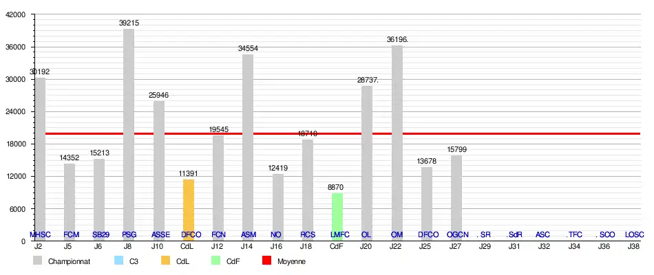 Affluence des Girondins de Bordeaux à domicile cette saison