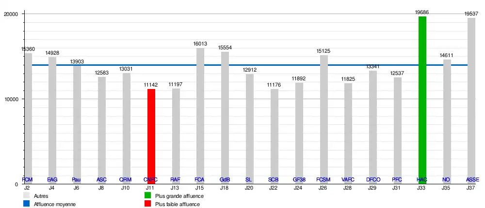 | Samedi | 19h00 | 20 | Stade lavallois | Dom. | 29 | 8e | 12 912 | ||||