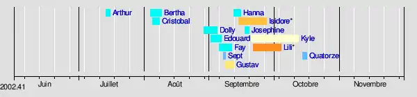 | Saison cyclonique 2002 dans l'océan Atlantique nord | |||||||||||||||||||||