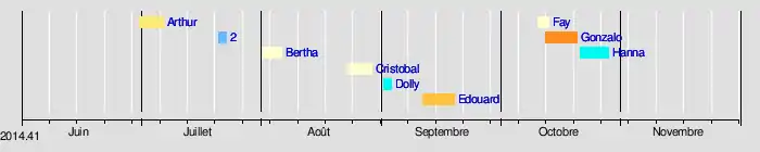 | Saison cyclonique 2014 dans l'océan Atlantique nord | |||||||||||||||||||||