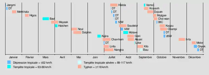 | Le plus intense | Soudelor (900 hPa, 215 km/h sur 10 minutes) | ||||||||||||||||||||