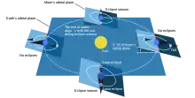 Une saison d'éclipses est la période durant laquelle les nœuds de l'orbite lunaire sont placés tels qu'une éclipse puisse se produire si la Lune arrive à un des nœuds de son orbite. Produisant une éclipse lunaire ou bien solaire selon que le nœud considéré est placé avant ou après la Terre (vu du Soleil).