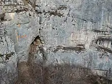 - Les voûtes de la Corraterie au-dessus de la grotte d'Orjobet abritent un impressionnant sentier à flanc de falaise[54].