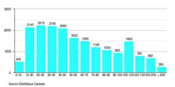 c. Statistique Canada. 2007. Profils des communautés de 2006, Recensement de 2006 Salaberry-de-Valleyfield (Code 2470052) (tableau).], produit no 92-591-XWF au catalogue de Statistique Canada. Ottawa. Diffusé le . Consulté le .