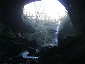 Vue de la cascade depuis l'intérieur du porche de Réveillon.