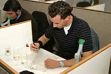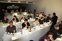 Lors des concours, de grandes salles ou bâtiments sont utilisés, on essaye alors de reproduire ces conditions en créant des îlots de dégustateurs, les moins nombreux possible, avec des nappes blanches, etc.
