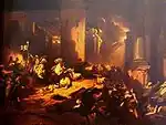 - Prise de Constantinople. — . Par Eugène Delacroix en 1840. — H. 4,06. — L. 4,92. Baudouin, comte de Flandre, commande les Français qui avaient donné l'assaut du côté de la terre, et le vieux doge Dandolo, à la tête des Vénitiens et sur ses vaisseaux, avait attaqué le port. Les principaux chefs parcourent les divers quartiers de la ville, et les familles éplorées viennent sur leur passage invoquer leur clémence.