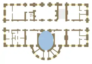 La rénovation de 1902, pendant la présidence de Theodore Roosevelt, modifia profondément le rez-de-chaussée. Les multiples couches de plancher pourri furent dégagées et un nouveau plancher installé. Plusieurs nouvelles pièces furent créées dont les murs furent enduits de plâtre. Des salons pour gentlemen et ladies furent créés ainsi que des salles de bains pour les invités. Charles Follen McKim admirait les voûtes en arêtes des plafonds réalisés par James Hoban dans le hall central. Le hall fut rénové et permit de relier les nouvelles ailes est et ouest. Bien que la salle ovale du rez-de-chaussée eut bénéficié de beaucoup d'améliorations et faisait maintenant partie des pièces d'habitation, elle conservait son caractère de lieu de transit et non de pièce à part entière.