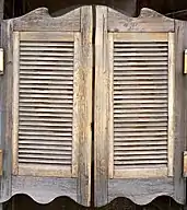 La porte d'entrée des saloons est typiquement représentée par un système en bois à double battant s'ouvrant dans les deux sens. Il s'agit là d'un stéréotype : en réalité seuls les saloons présents dans certaines régions à la météo clémente présentaient ce type de porte ; et elle était alors toujours doublée d'une porte plus classique pour parer aux événements climatiques rares, aux nuits fraîches et pour des raisons de sécurité[6].