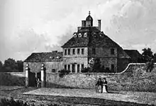 En , Johnson se voit accorder une audience par le roi George III dans la bibliothèque de la Maison de la Reine[N 7] ; la rencontre est organisée par Barnard (en), le bibliothécaire du Roi[137] : le roi, ayant appris que Johnson allait visiter la bibliothèque, demanda à Barnard de le présenter à Johnson[53]. Après la brève entrevue, Johnson est à la fois impressionné par le roi lui-même et par leur conversation[132].