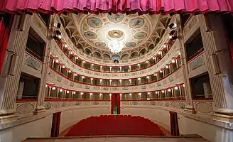 Le Théâtre Feronia est l’œuvre de l’architecte Ireneo Aleandri qui l’a construit en 1827 sur les ruines d’un théâtre en bois du XVIIIIe siècle. Si la façade est modeste et que les dimensions réduites correspondent à celles du bâtiment existant, la structure néoclassique de l’intérieur est de grande qualité. Le rideau représente le rite de la libération des esclaves devant le temple de la déesse Feronia.