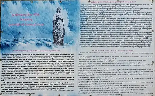 - Notice informative affichée en khmer, vietnamien et anglais, dans le sanctuaire, ainsi que le feuillet à disposition des visiteurs.