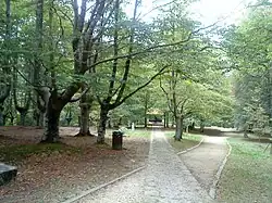 - Le chemin de croix et le calvaire: construit en 1943 sur ordre posthume d'un fidèle, c'est un chemin de croix double, le chemin de l'allée est différent de celui du retour, conduisant à un calvaire fixé dans un balcon naturel qui est ouvert sur le défilé d'Atxarte et le Durangaldea.