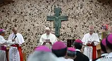 - « Le Vatican proclame le site coréen de Haemi, lieu de pèlerinage international », sur vaticannews.va, Vatican News, (consulté le ) : « Ce sanctuaire est le second site coréen après les Sentiers du pèlerinage catholique de Séoul à être reconnu comme lieu de pèlerinage international par le Vatican. »