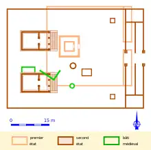 Un hameau, mentionné par les sources au XIIe siècle, occupe le site mais peu de structures, à l'exception notable d'un puits qui recoupe le mur du premier péribole, sont construites dans l'enceinte du sanctuaire[8].