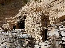 Les maisons sont en pierre sèche. Les bois locaux utilisés pour la construction sont l'épine du Christ (Spina christi), le genévrier, l'acacia et l'olivier. Des meules à farine sont encore visibles.