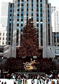 Le premier arbre de Noël du Rockefeller Center est érigé en 1931, pendant la construction du building, en pleine période de Grande Dépression. Les ouvriers décorent un sapin baumier de 20 pieds (6,1 m) avec des guirlandes de canneberges et de papier ainsi que quelques boîtes de conserve[1], la veille de Noël[2]. Avec l'éclairage du premier arbre officiel de 15 m deux ans plus tard, l'arbre devient un véritable repère à la période des fêtes pour les New-Yorkais et les visiteurs. Une patinoire est ouverte sous l'arbre sur la place en 1936[3]. Depuis lors, l'arbre de Noël du Rockefeller Center est une tradition annuelle[1].