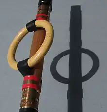 À plat sur ces sarbacanes, à 10 cm de l’embouchure, se trouve positionné un anneau qui participe d’un procédé optique inventé par le créateur de la discipline en tant que designer[2],[28] Selon son concepteur, ce procédé impliquerait un tout autre protocole de lecture que les modes habituels de visée, et réclamerait, un changement de paradigme. Le principe étant de mettre en synergie consciente et simultanée des stimulus captés par des systèmes sensoriels différents. Cela permet de placer les sensations kinesthésiques en résonances synesthésiques avec la perception visuelle.