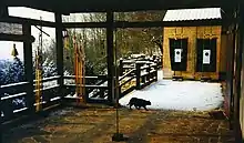 Le parallèle est fait avec l’observation que l’eau de la rivière qui s'écoule dans un creux, manifeste deux rives, là où il n'y a qu'un seul territoire. Pareillement les mains jointes sont entrouvertes, un « échantillon » de vide « s'écoule » entre les mains… Le souffleur doit ressentir ses mains comme jointives, reliées par ce vide. Ce que ressentent les mains devenant un « échantillon » que le pratiquant doit éprouver avec la totalité de son attention. Alors la cible « là-bas » et le souffleur « ici » sont comme ces deux mains jointes entrouvertes, un seul et même territoire.