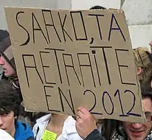 Par opposition au sarkozysme, a émergé la notion d'anti-sarkozysme. À l'inverse du sarkozysme, l'anti-sarkozysme ne désigne pas une politique ou un ensemble d'actions, mais se définit de manière négative comme l'opposition au sarkozysme ou aux actions menées par la personne de Nicolas Sarkozy[18],[19]. Il peut cependant être revendiqué[20] et même se matérialiser sur un site Web d'extrême-droite[21].