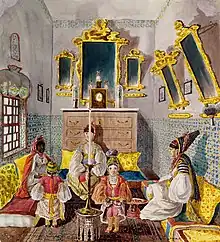 Au début du XIXe siècle, la description de l'ambassadeur américain Shaler est d'une précision accrue : « Les têtes des Mauresques sont recouvertes d'une lame d'or ou d'argent d'une largeur de six pouces, fixée au-dessus de leur chignon par de petits cordons... Cette coiffe, nommée Sarma, doit entourer la tête, laissant ainsi les cheveux apparents uniquement au niveau des tempes »[2].
