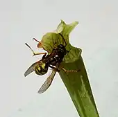 Le jardin botanique du muséum d'histoire naturelle de Nantes a découvert en 2015 que des spécimens présents avaient capturé des frelons asiatiques ; n'étant pas sélectives et piégeant trop peu de frelons, ces plantes ne peuvent pas être utilisées dans un système de piégeage de masse[2], cependant des chercheurs vont étudier la molécule odorante qui attirerait ces frelons afin d'en produire un piège[3].