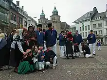 - Tchantchès, personnage emblématique de Liège est traditionnellement représenté vêtu d'un sarrau surmonté d'un foulard rouge.