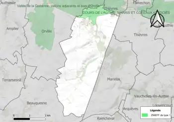 Le territoire communal comprend une ZNIEFF de type 1[Note 2] : la vallée de la Quillienne, ses vallons adjacents et bois d'Orville, d’une superficie de 2 143 hectares et d'une altitude variant de 65 à 154 mètres. Cette vallée associe des influences thermophiles dans les lisières et sur les pelouses et un caractère psychrophile au niveau des forêts de ravins. Une partie du site est occupée par l’agriculture intensive[11].