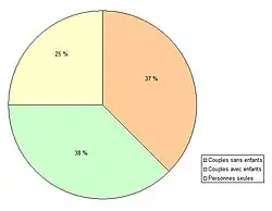 En 2007, la population comportait 64 familles, dont 24 couples sans enfants (38 %), 24 couples avec enfants (38 %) et seize personnes seules, toutes des hommes (25 %).