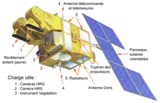 Un satellite artificiel est composé d'une charge utile, définie spécifiquement pour la mission qu'il doit remplir, et d'une plate-forme souvent standardisée assurant les fonctions de support comme la fourniture d'énergie, la propulsion, le contrôle thermique, le maintien de l'orientation et les communications. Le satellite est suivi par un centre de contrôle au sol, qui envoie des instructions et recueille les données collectées grâce à un réseau de stations terriennes. Pour remplir sa mission, le satellite doit se maintenir sur une orbite de référence en orientant ses instruments de manière précise : des interventions sont nécessaires à intervalles réguliers pour corriger les perturbations naturelles de l'orbite générées, dans le cas d'un satellite terrestre, par les irrégularités du champ de gravité, l'influence du Soleil et de la Lune ainsi que la traînée créée par l'atmosphère qui subsiste en orbite basse.