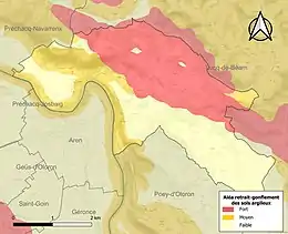 Le retrait-gonflement des sols argileux est susceptible d'engendrer des dommages importants aux bâtiments en cas d’alternance de périodes de sécheresse et de pluie[33]. 59,8 % de la superficie communale est en aléa moyen ou fort (59 % au niveau départemental et 48,5 % au niveau national)[34]. Depuis le , en application de la loi ELAN, différentes contraintes s'imposent aux vendeurs, maîtres d'ouvrages ou constructeurs de biens situés dans une zone classée en aléa moyen ou fort[Note 7],[35].
