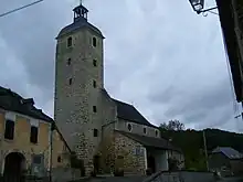 Le clocher, à cinq niveaux, est recouvert d’un toit en dôme à l’impériale surmonté d’un clocheton (XVIIe ou XVIIIe siècle). Il est en fait la combinaison du tout début du XVIIIe, l’évêque Joseph de Revol ayant interdit la nudité dans la décoration du mobilier des églises de son diocèse, en 1712[8].