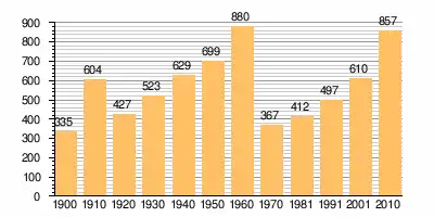 - À partir de 1900, d'après l'Instituto Nacional de Estadística de España, son évolution démographique est la suivante: