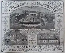 Dans les années 1870, Arsène Saupiquet (1849-), originaire de Jussac, un village du Cantal, s'installe à Nantes avec sa famille afin d'occuper le poste de directeur de la nouvelle usine que le ferblantier Alfred Riom (futur maire de la ville) vient de créer. Saupiquet poursuit ainsi sa carrière dans les établissements Riom où il a débuté à l'âge de 10 ans à la suite du décès de son père[2],[3].